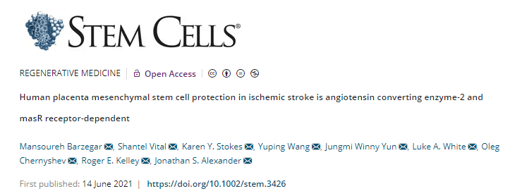 研究发现胎盘间充质干细胞(hPMSCs)能够表达大量的血管紧张素转换酶-2 (ACE-2),它的产物(Ang1-7)与相关受体结合后,能发挥血管舒张、抗氧化、和抗炎等作用。