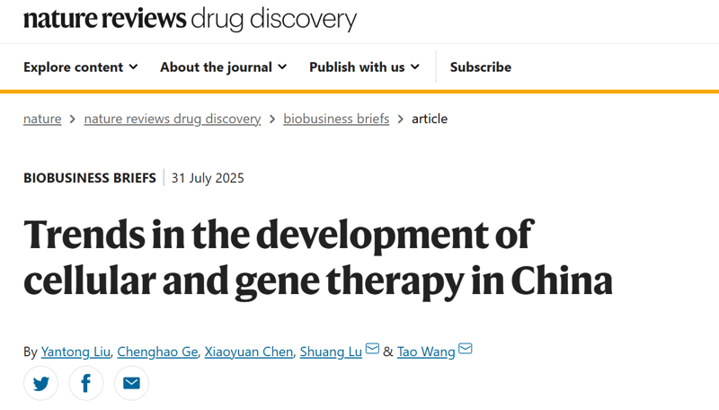 2025年7月31日,国家药监局药品审评中心(CDE)联合清华大学团队在Nature Reviews Drug Discovery上发表了题目为“Trends in the development of cellular and gene therapy in China”的文章,系统总结了中国细胞与基因治疗(CGT)领域近八年发展轨迹。