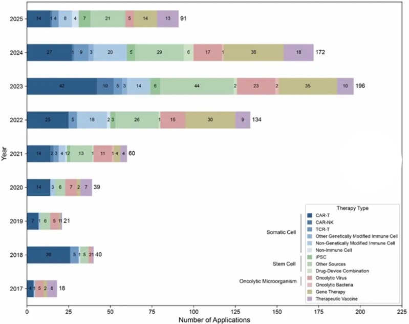 2017-2025年中国CGT产品的IND申请趋势